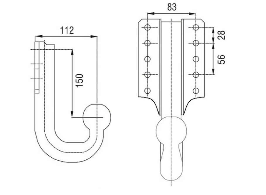 Rozstup otvorov: 83x56mm, d=11mm, znížený o 150mm; bez pevnostných skrutiek
