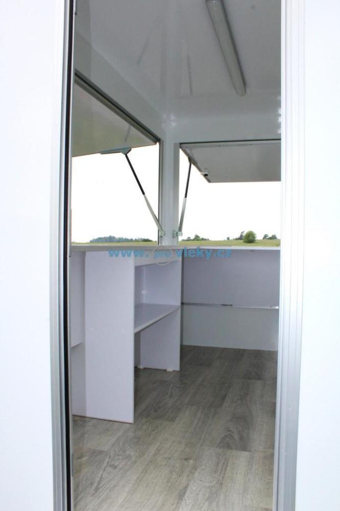 Malý nebrdený predajný stánok s nízkou váhou a kompaktnými rozmermi. V základe už s predajným pultom, PVC a prívodom 230V. Prívesný vozík je možné využiť ako gastro predajňu alebo predajňu.
