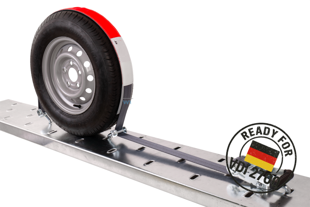Smernica VDI 2700 časť 8.1 je nemecká technická norma, ktorá špecifikuje podrobné požiadavky na zabezpečenie vozidiel prepravovaných na plošinových prívesoch a návesoch . V súvislosti s upevňovacími popruhmi s upevnením kolies táto smernica okrem iného špecifikuje spôsob usporiadania pásov, požadovaný počet upevňovacích bodov (napr. 3-bodový systém), parametre minimálnej napínacej sily a zásady ich označovania a technického schválenia. Súlad s normou VDI 2700 8.1 znamená, že popruhy spĺňajú prísne požiadavky na bezpečnosť, spoľahlivosť a účinnosť znehybnenia prepravovaného vozidla, čo je kľúčové pre profesionálnu prepravu osobných automobilov a dodávok. Vďaka tomu si užívateľ môže byť istý, že použitý upevňovací systém spĺňa súčasné európske a nemecké normy v oblasti bezpečnosti cestnej premávky.