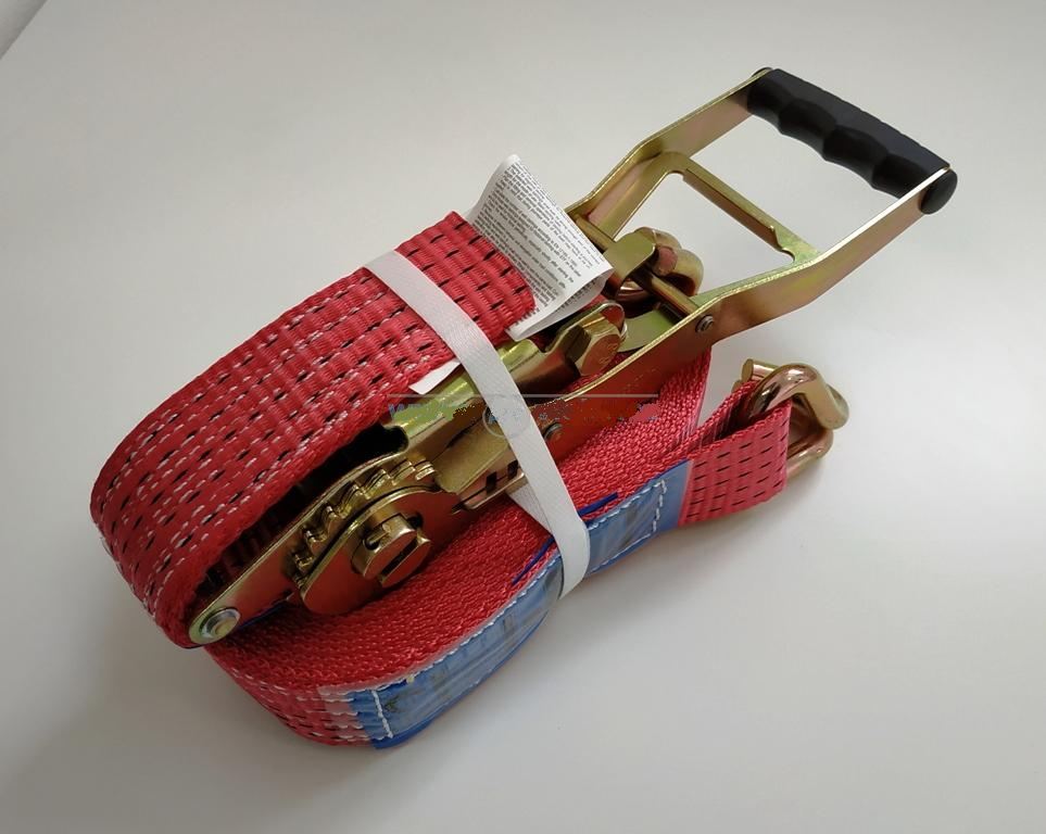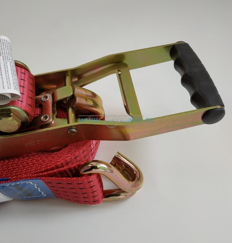 Upínací pás je vybavený dvojčinnou ERGO račňou. Tá umožňuje použítí až dvojnásobku upínacie sily proti štandardným pásom. Skvelá pevnosť pásu 5000 daN je doplnená robustné račňou o sile 400 daN. Šírka pásu je 50mm a je zakončený hákmi.