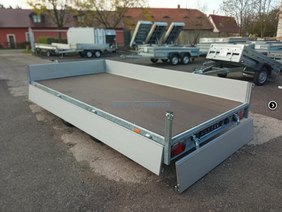 Perfektný príves pre remeselníkov s možnosťou nakladania z boku (odnímateľné a sklopné bočnice).